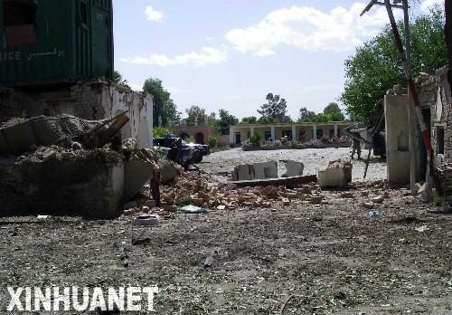 這是5月12日拍攝的阿富汗東部霍斯特省政府大樓的爆炸現場。阿富汗警方12日說,數名自殺式襲擊者當天上午襲擊了阿東部霍斯特省政府大樓,造成至少6人死亡,另有18人受傷。 新華社發