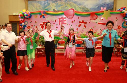 今天(1日)是六一國際兒童節。應溫家寶總理邀請,參加北京市中關村第三小學“歡聚北京、祝福祖國、共慶六一”活動的56個民族的近百名小學生代表,來到了向往已久的中南海。
