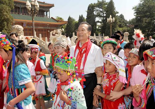 ——溫家寶總理和各族兒童在中南海共度六一兒童節側記