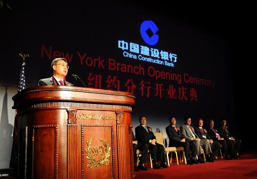 中國駐紐約總領事彭克玉、紐約市副市長羅伯特·利伯、紐約州銀行廳廳長理查德·奈曼、美國銀行首席執行官肯尼思·劉易斯、高盛集團首席運營官加里·科恩、建行副行長范一飛以及來自美國社會各界嘉賓400余人出席了開業典禮。