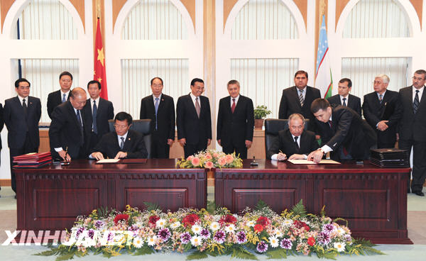 6月27日,中國國務(wù)院副總理李克強在塔什干與烏茲別克斯坦第一副總理阿齊莫夫舉行會談。會談結(jié)束后,李克強與阿齊莫夫共同出席兩國在能源、經(jīng)貿(mào)、旅游、醫(yī)療等領(lǐng)域11份合作文件的簽字儀式。新華社記者李學(xué)仁攝