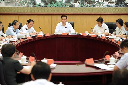 7月21日,中共中央政治局常委、中央書記處書記、國家副主席、中央深入學習實踐科學發展觀活動領導小組組長習近平,主持召開中央深入學習實踐科學發展觀活動領導小組第九次會議并講話。新華社記者 馬占成 攝