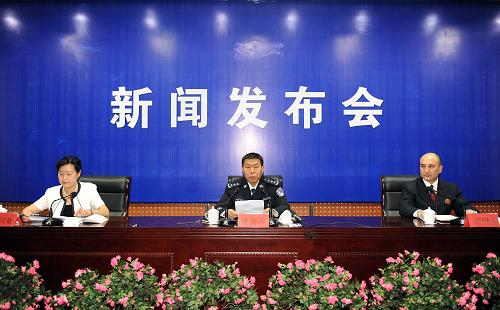 8月4日,新疆維吾爾自治區公安廳副廳長、烏魯木齊市公安局局長陳壯為(中)在新聞發布會上通報“7.5”打砸搶燒事件偵查進展情況。截至8月4日,烏魯木齊公安機關已刑事拘留“7·5”打砸搶燒事件犯罪嫌疑人718名,目前案件的偵破工作仍在緊張進行中。 新華社記者 沙達提 攝