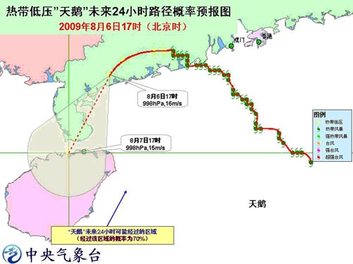 預計,“莫拉克”將以每小時15公里左右的速度向西偏北方向移動,強度還將加強,并逐漸向臺灣東部沿海靠近,有可能于明天晚上到后天早晨擦過或登陸臺灣東北部沿海地區,然后向福建北部到浙江中部一帶沿海靠近。