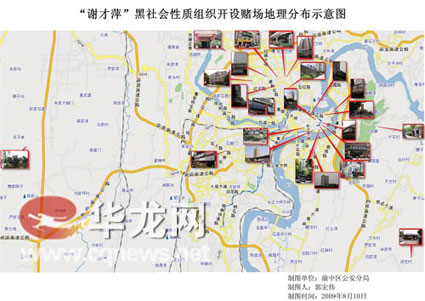謝才萍設置的賭場分布圖 市公安局供圖 華龍網發