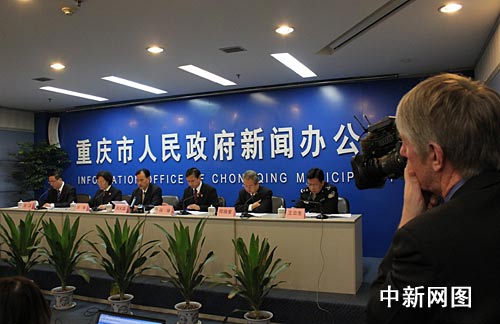 中共重慶市委常委、政法委書記、重慶打黑除惡專項斗爭工作領導小組組長劉光磊發布新聞。