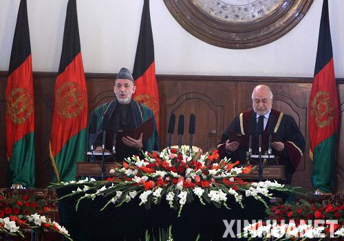 卡爾扎伊宣誓就職后發(fā)表講話,承諾實(shí)施改革、加強(qiáng)反腐以及爭取阿富汗安全部隊(duì)5年內(nèi)接管防務(wù)。