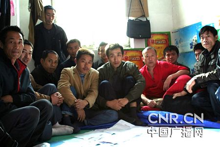 說話的人叫鐘家泉,是這群農(nóng)民工的代表,記者見到他是在深圳市郊的一處簡易房內(nèi),包括廁所在內(nèi),房間面積不超過10平米,而這里卻住著他的10多位工友,地上沒有床,救濟(jì)站提供的棉被是房間里唯一的家具。這些人有的因?yàn)椴⊥匆呀?jīng)無法工作,有的因?yàn)橐伤茐m肺而被包工頭辭退,難聞的氣味和對死亡的恐懼彌漫著整個(gè)房間。他們因?yàn)槁殬I(yè)病檢查受阻而走到一起,目前已有120多人。他們都有不同程度的咳嗽、胸悶、呼吸困難等癥狀。工人們說,十多年來他們一直在深圳當(dāng)炮工,每天都要吸入大量粉塵,但以前并不知道這會(huì)危及生命。他們說,自己已經(jīng)有兩三個(gè)老鄉(xiāng)死了,死掉的時(shí)候他們都親眼看到了,現(xiàn)在感覺自己的身體和死掉人的癥狀幾乎相同。而一位在湖南張家界中醫(yī)院做過檢查的工友說:醫(yī)生照出來一看,說這個(gè)病很嚴(yán)重,最后,我跟他說明了,我說我打了幾十年風(fēng)鉆,他說肯定是塵肺病。