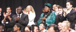 氣候大會結束后,疲憊的代表們鼓掌歡迎。