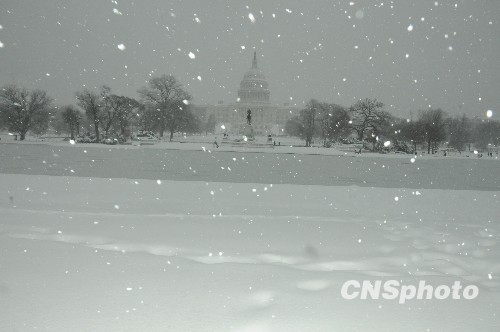 當(dāng)?shù)貢r(shí)間12月19日,美國東海岸廣大地區(qū)遭受暴風(fēng)雪襲擊,圖為當(dāng)日大雪紛飛中的美國華盛頓國會(huì)山。美國國家氣象局預(yù)測(cè),包括華盛頓、巴爾的摩、費(fèi)城和紐約在內(nèi)的東海岸中部地區(qū)積雪將達(dá)五十厘米。氣象專家稱,華盛頓的大雪或許是自一九三二年以來十二月的歷史性最大降雪。 中新社發(fā) 吳慶才 攝