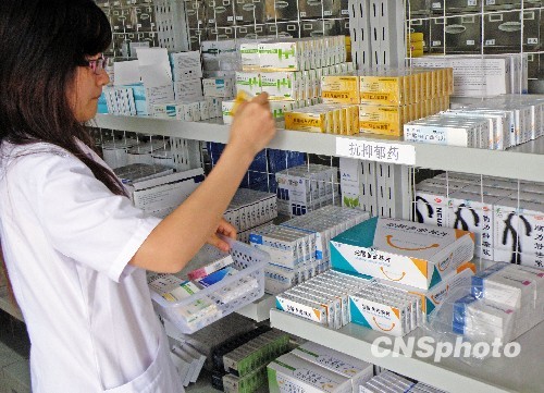 8月20日,中國衛生部藥物政策與基本藥物制度司司長鄭宏稱,2009年12月份前,中國各省區市將在30%的政府辦城市社區服務機構和縣(基層衛生醫療機構)實施基本藥物制度。基本藥物制度實行省級集中網上公開招標采購,統一配送、全部配備使用基本藥物,并實現零差率銷售,基本藥物全部納入基本醫療保障藥品報銷目錄,報銷比例明顯高于非基本藥。 中新社發 劉君鳳 攝