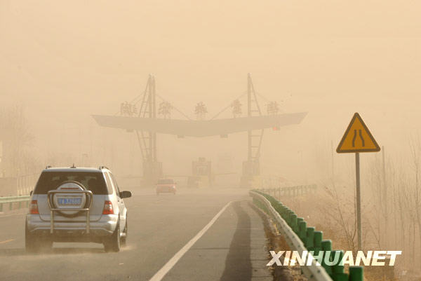 12月24日,寧夏石嘴山市平羅縣陶樂黃河大橋路段沙塵彌漫。當日,寧夏回族自治區氣象臺發布寒潮黃色預警,銀川、石嘴山、吳忠等地出現寒潮降溫天氣,氣溫降幅最高可達12攝氏度,部分地區伴有大風沙塵天氣。新華社記者王鵬攝