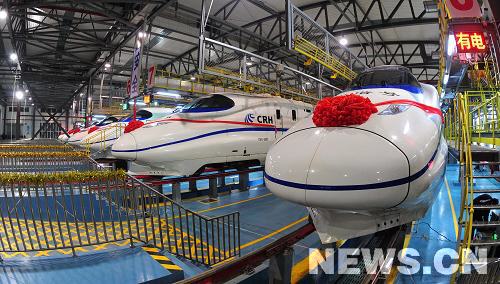 新華網廣州12月26日電(記者 齊中熙 熊金超 陳黎明 陳先鋒)26日9時,武漢、長沙、廣州三地同時首發中國國產時速350公里和諧號高速列車。至此,經過4年半的建設,這條世界上一次建成最長、運營時速最高的武廣高速鐵路正式投入運營。
