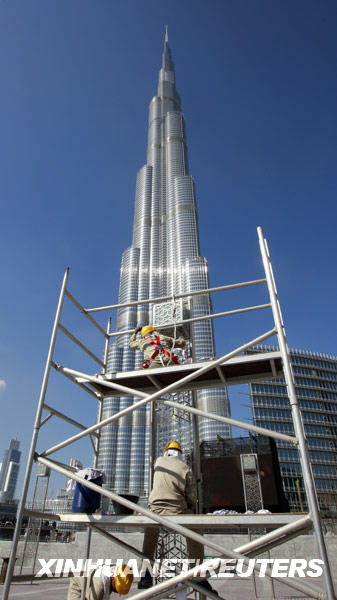 1月3日,工人在阿拉伯聯合酋長國迪拜的“迪拜塔”附近工作。新華社/路透