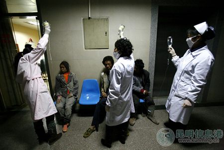 昨天下午,昆明新機場引橋支架垮塌事故中的傷者,都得到了及時的救助。云南省120急救中心出動了8輛急救車和50人趕到現(xiàn)場參與救援;昆明市經(jīng)開人民醫(yī)院等收治傷員的醫(yī)院立即啟動緊急預(yù)案,妥善安排傷員。
