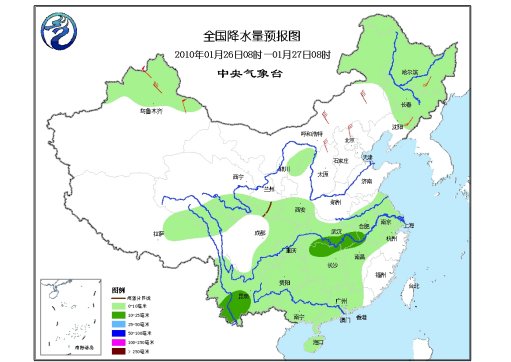 26日08時至27日08時,新疆北部、青海東部和南部、西藏中東部偏北地區、川西高原西部、西北地區東南部、陜西北部、內蒙古河套地區和東北部、東北地區中北部等地有小雪(雨夾雪)或陣雪;黃淮南部、江淮、江漢大部、西南地區大部、江南中西部和北部、華南大部等地有小到中雨或陣雨。四川盆地東南部、湖南東部、江西北部等地的部分地區有能見度小于1000米的霧,局部地區能見度不足500米。新疆北部、內蒙古大部、東北、華北北部等地有4~6級風。臺灣海峽、臺灣以東洋面和以南海域、南海北部海域將有6~8級的東北風。渤海、黃海大部海域將有5~7級西南風;東海大部海域將有5~6級東北轉東南風;南海中部和南部海域、北部灣將有5~6級的東北風。