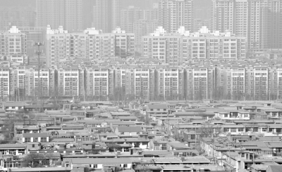 石家莊一個城中村與遠處高樓相映襯,城中村由于租房價格低廉成為很多低收入家庭的聚居區,而樓房則是他們中很多人遙不可及的夢想。 新華社記者 鞏志宏 攝