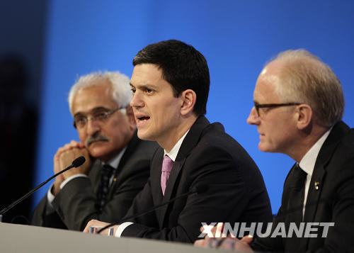 1月28日,在英國首都倫敦,英國外交大臣米利班德(中)、聯合國秘書長阿富汗問題特別代表艾德(右)和阿富汗代理外長斯潘塔在阿富汗問題國際會議結束后出席新聞發布會。阿富汗問題國際會議當天下午在倫敦閉幕。與會各方認為應該從安全、發展與治理,地區合作和國際援助三方面著手努力,以應對阿富汗面臨的政治、經濟、地區安全等一系列挑戰。 新華社發