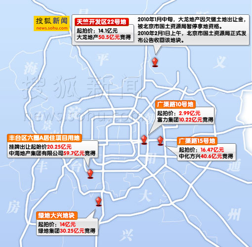 去年11月20日,手舉28號牌的大龍公司負責人以50.5億元拍得順義地塊。2個多月后,該地塊因欠繳地價款被政府收回。