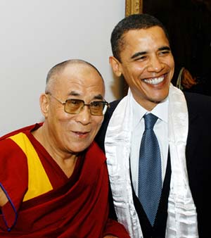 2005年,達賴在竄訪美國期間,曾與還是議員的奧巴馬有過一面之交
