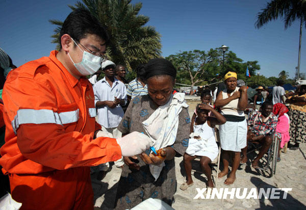 海地遭受大地震后,中國(guó)在第一時(shí)間派出國(guó)際救援隊(duì)支援海地人民抗震救災(zāi)。當(dāng)?shù)弥5厝嗣袢贬t(yī)少藥后,又緊急派出中國(guó)醫(yī)療防疫救護(hù)隊(duì)為海地人民提供救死扶傷的國(guó)際人道主義援助。