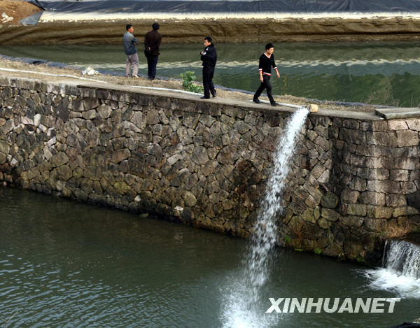 2月22日,救援人員在天臺縣龍珠潭水庫蓄水池抽水,尋找失蹤兒童。新華社發
