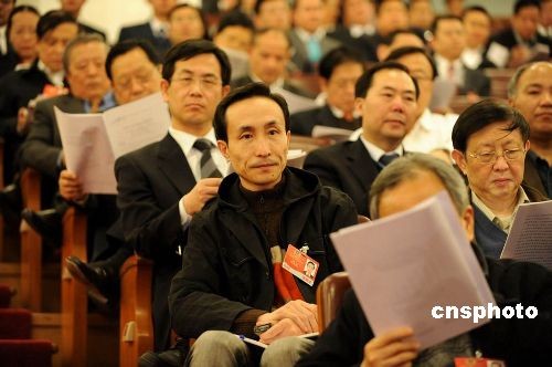 資料圖:2009年全國兩會期間,演員鞏漢林在聽會。 中新社發 于潤杰 攝
