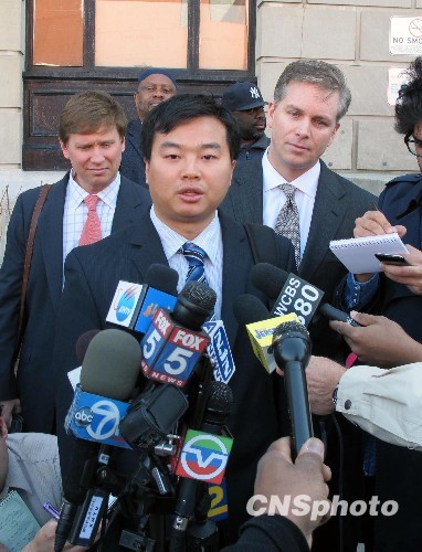 3月9日,美國新澤西州紐瓦克地方法院二度開審“吻癱機場”的中國博士江海松案。走出法庭后,江海松則向公眾發表聲明“深刻地道歉”,并感謝他的律師、中國駐紐約總領事館以及他身邊的親朋好友們對他的幫助。 中新社發 魏晞 攝
