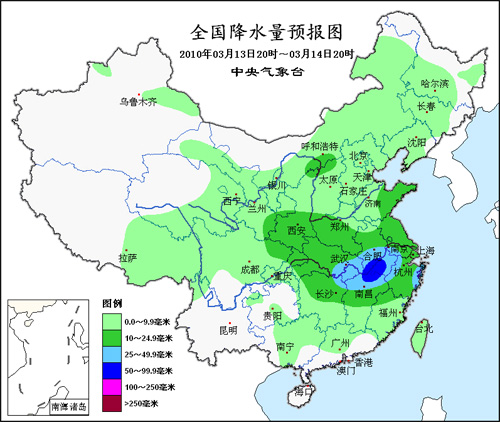 除了大風、降溫、沙塵之外,大范圍雨雪天氣更是此次天氣過程的“重頭戲”。14日我國雨雪不僅范圍會明顯擴張,勢力也將達到鼎盛。預計13日夜間至14日白天,從新疆東北部、西北地區大部、西藏東部、東北、華北一直到南方大部地區都將出現雨雪的身影。其中,內蒙古東部、吉林西部、黑龍江西南部等地的局部有大雪;湖北東部、安徽中南部、江西北部等地的部分地區有大雨,局地暴雨,并伴有短時雷雨大風等強對流天氣。