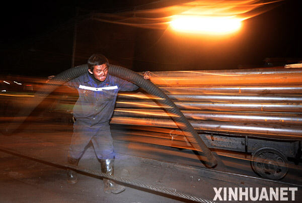 3月29日凌晨,救援人員在搬運搶險設(shè)備。