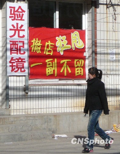 2010年4月13日,北京海淀區西北五環外的西北旺鎮唐家嶺即將拆遷改造,商家開始紛紛清倉大甩賣。 中新社發 祥云 攝
