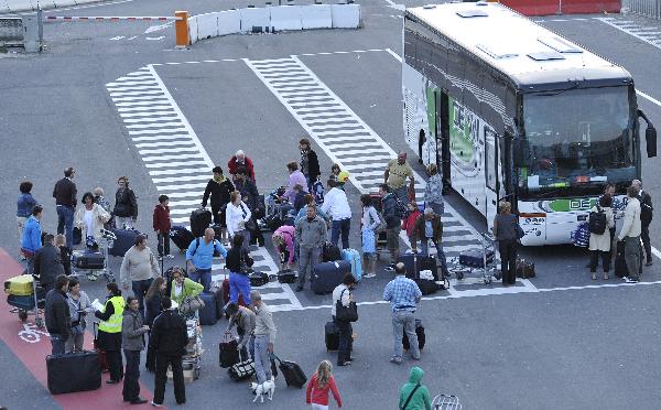 4月19日,乘坐航空公司租用的大巴從西班牙返回的旅客抵達(dá)比利時(shí)首都布魯塞爾國(guó)際機(jī)場(chǎng)。新華社記者武巍攝