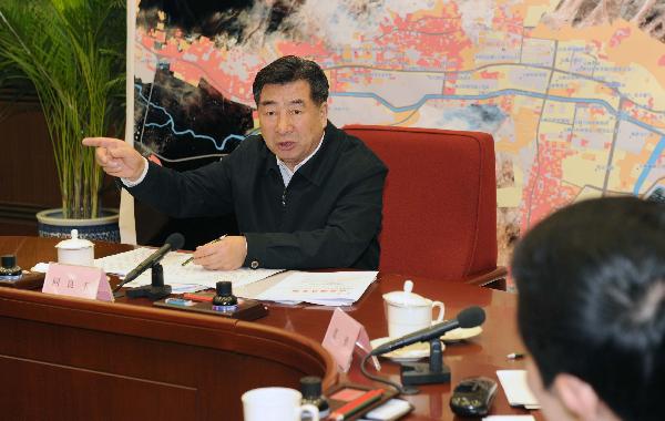 4月21日,中共中央政治局委員、國務院副總理、國務院抗震救災總指揮部總指揮回良玉在北京主持召開總指揮部第八次全體會議。 新華社記者張鐸 攝