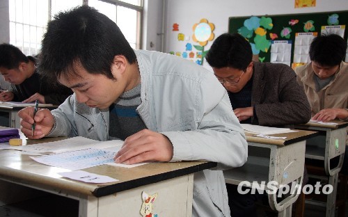4月25日,2010年山東省公務(wù)員考試錄用公共科目筆試在全省17個(gè)地市同時(shí)舉行。考試報(bào)考人數(shù)為40.8萬(wàn)人,比去年增長(zhǎng)4.4%,競(jìng)爭(zhēng)8619個(gè)職位。這是山東省實(shí)行公務(wù)員考錄制度以來(lái),規(guī)模最大、人數(shù)最多的一次考試。 中新社發(fā) 吉 喆 攝