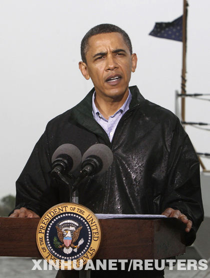 5月2日,奧巴馬在路易斯安那州視察墨西哥灣原油泄漏災(zāi)情時(shí)說(shuō),這次原油泄漏可能造成前所未有的環(huán)境災(zāi)難,政府將盡其所能阻止災(zāi)難擴(kuò)大。 新華社/路透