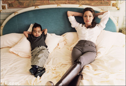 安吉麗娜·朱莉和自己領養的亞裔小兒子,兩個人一樣的姿勢,默契十足,羨煞旁人。