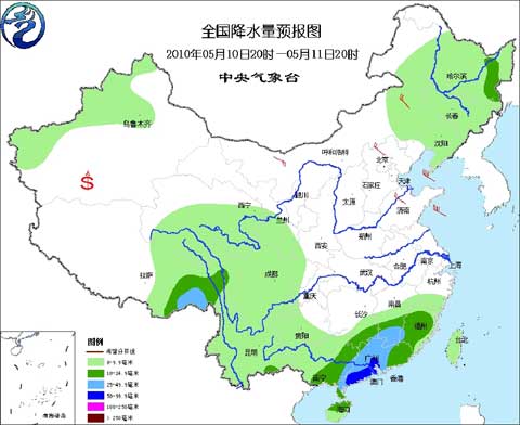 中央氣象臺5月10日17時發布未來三天全國天氣預報: