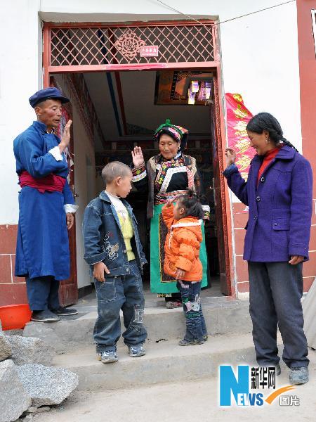 2008年5月12日四川汶川大地震突然襲來,在家忙著收拾家務的理縣甘堡鄉日爾腳村村民王富貴,頓感天眩地轉、站立不穩,本能地跳出房屋,循著救命的呼喊將鄰居楊志蘭家祖孫三口救出。他不顧自己的傷情,馬上挨家搜救,又救出了三郎班卓等村民。 5月8日,臨近地震兩周年紀念日,王富貴在自己的新家迎來了當年被自己搭救的楊志蘭和她的孫兒、孫女、三郎班卓和她的丈夫王海清,談起這段往事,楊志蘭和三朗班卓泣不成聲,說:忘不了,忘不了,忘不了你的救命之恩!這是王富貴(左一)和被救的三郎班卓(右一)及楊志蘭祖孫三人(5月8日攝)。 新華社記者 何俊昌 攝