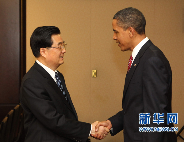 6月26日,中國國家主席胡錦濤在加拿大多倫多會見美國總統奧巴馬。新華社記者 馬占成 攝