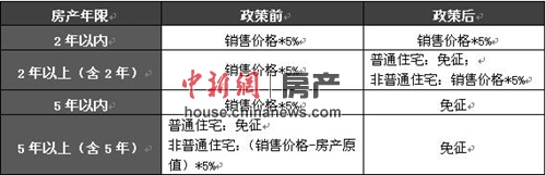表:二手房營(yíng)業(yè)稅政策調(diào)整前后對(duì)比