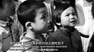 5分17秒的視頻中,拍攝地點涉及了北京的莫斯科飯莊、俄羅斯駐華大使館、俄羅斯商貿街、國際關系學院以及幼兒園等,受訪人群也來自不同職業(yè)和年齡段,從幼兒園里的小朋友到騎自行車買菜的大爺,大家都從各自的視角回答了“提到俄羅斯你會想到什么”、“你眼中的普京”、“你想對普京說點啥”三個問題。