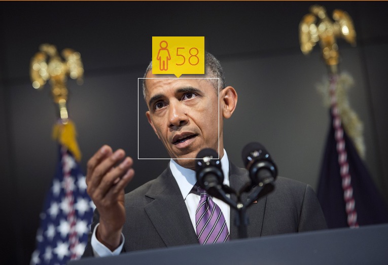 照片時間:2015年4月24日。奧巴馬視察弗吉尼亞州麥克林的美國全國情報主任辦公室,參加該機構建立10周年活動!邦価g”分析這張照片給出的結果為58歲。短短兩年時間,奧巴馬“顏齡”老了12歲。