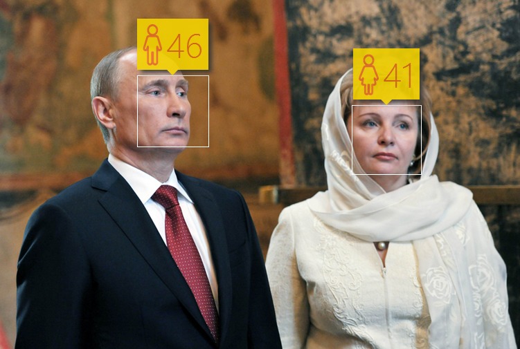 照片時間:2012年5月8日。2012年3月4日,普京第三度當選俄總統,“顏齡”分析這張普京與妻子柳德米拉的照片得出的結果是46歲,12年“顏齡”只長了一歲?