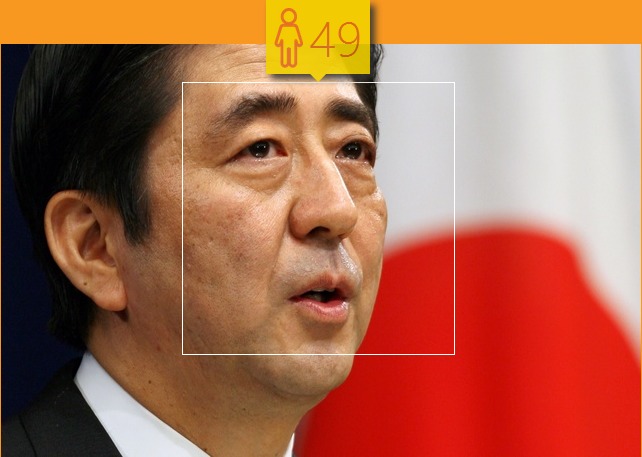 照片時(shí)間:2006年。2006年9月20日,日本執(zhí)政的自民黨舉行總裁選舉,51歲的安倍晉三當(dāng)選,當(dāng)年12月當(dāng)選日本首相。“顏齡”測(cè)試給出的結(jié)果是49歲,基本吻合。