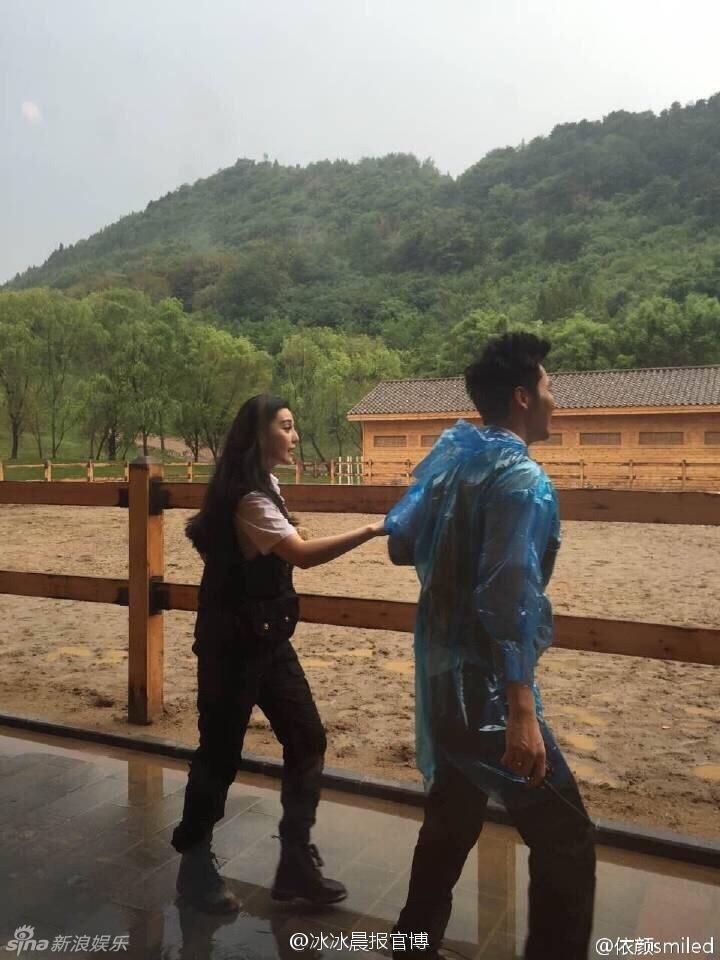 據香港媒體報道,20日,有網友拍得范冰冰和李晨疑似拍攝真人秀節目的照片,照片中穿上雨衣的李晨拖著范冰冰手在農莊小跑步,十足的偶像劇浪漫情節。