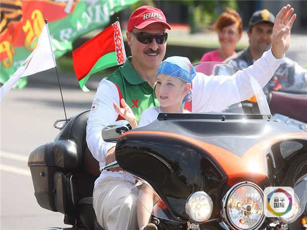 2009年,白俄羅斯總統盧卡申科接見“明斯克-2009”機車節的參賽選手時,也想親自體驗一把駕馭哈雷戴維森的超快感。然而,總統卻在激情的體驗中不自覺違反了交規--不僅自己未戴頭盔,還讓5歲、同樣未戴頭盔的兒子坐在油箱上。