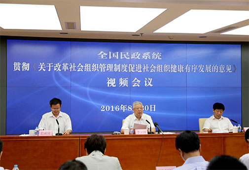 全國民政系統貫徹《關于改革社會組織管理制度促進社會組織健康有序發展的意見》視頻會議在京舉行