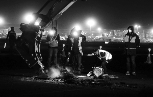 崔艾軍說,啟動大修后,按照工程計劃,200名施工人員要在半小時之內擺放800個錐形桶,安裝5000米“鐵馬”,關閉23個滑行道口。
