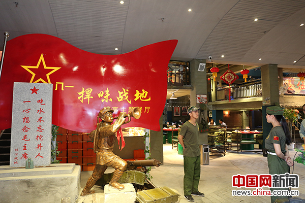 “捍味戰地”集用餐、休閑、娛樂、博物館于一體,口號為“吃好喝好,上陣殺敵”,軍旅氣息濃厚。“平時為人民服務、戰時為祖國服務”的軍旅文化滋養著人心,使人們陷入對歷史過往的緬懷和沉思。在享受色香味俱全的紅色軍旅茶飯的同時,開開車子、拍拍照,感受一次軍暴風潮。