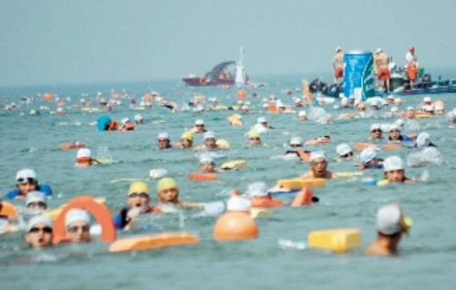 兩岸1800余名泳士搶灘金門料羅灣(圖:聯合報) 中國臺灣網7月30日消息 來自金門、廈門和臺灣的1800余名泳士,昨天在充滿歷史記憶的金門料羅灣海域長泳競技。潮來潮往之間,兩岸同胞以泳會友,大家相約明年再見! 據臺灣《中國時報》報道,這項名為“2007搶灘料羅灣”金門海上年度大賽,吸引1819人報名參加,除73支來自臺灣的隊伍、19支大陸隊伍、6支金門隊伍之外,還有兩名加拿大和一名印度籍泳士。 昨天上午8時15分,在金門縣長李炷烽鳴槍之下,泳士們陸續下水,五顏六色的浮板和泳裝將碧海藍天妝點得繽紛熱鬧,至9時許才完成“下水”典禮,場面十分壯觀。 在來回長達3000公尺的考驗下,有人被小水母親吻,留下難得的金門回憶;也有人體力不支,被海上警戒的船艇送回岸邊,未能完成搶灘料羅灣的“壯舉”,抱憾不已,直說明年還要再來!第一位回到岸上的金門籍選手呂榮平,很高興自己率先搶灘成功。(周先) |